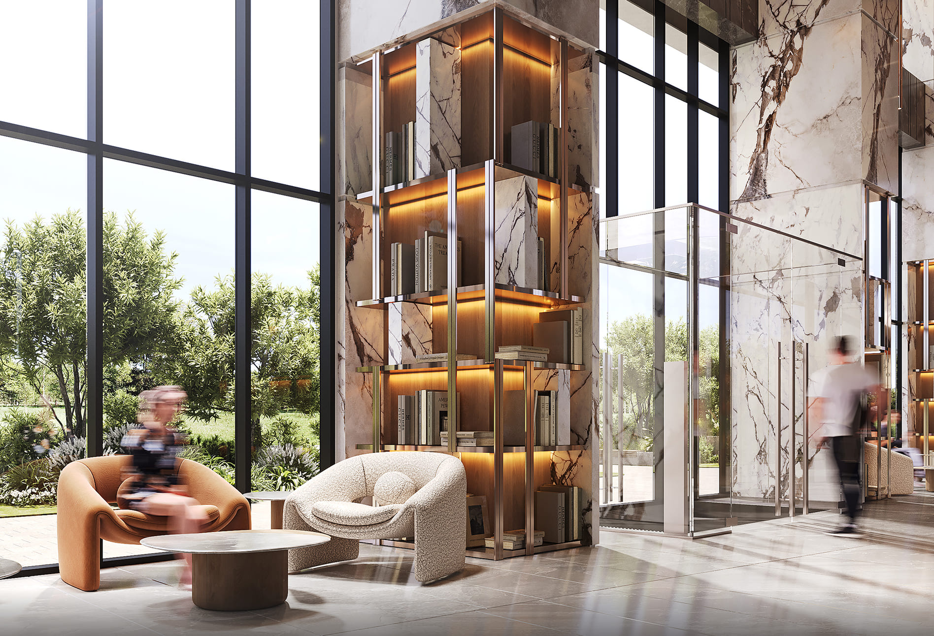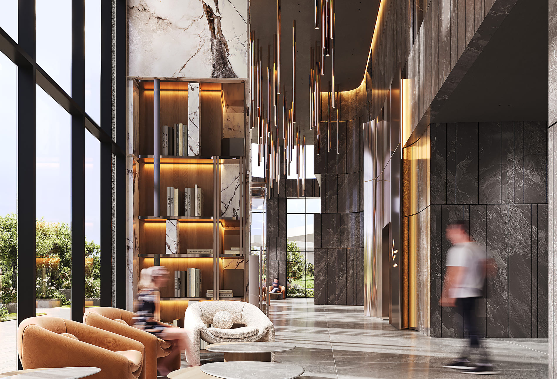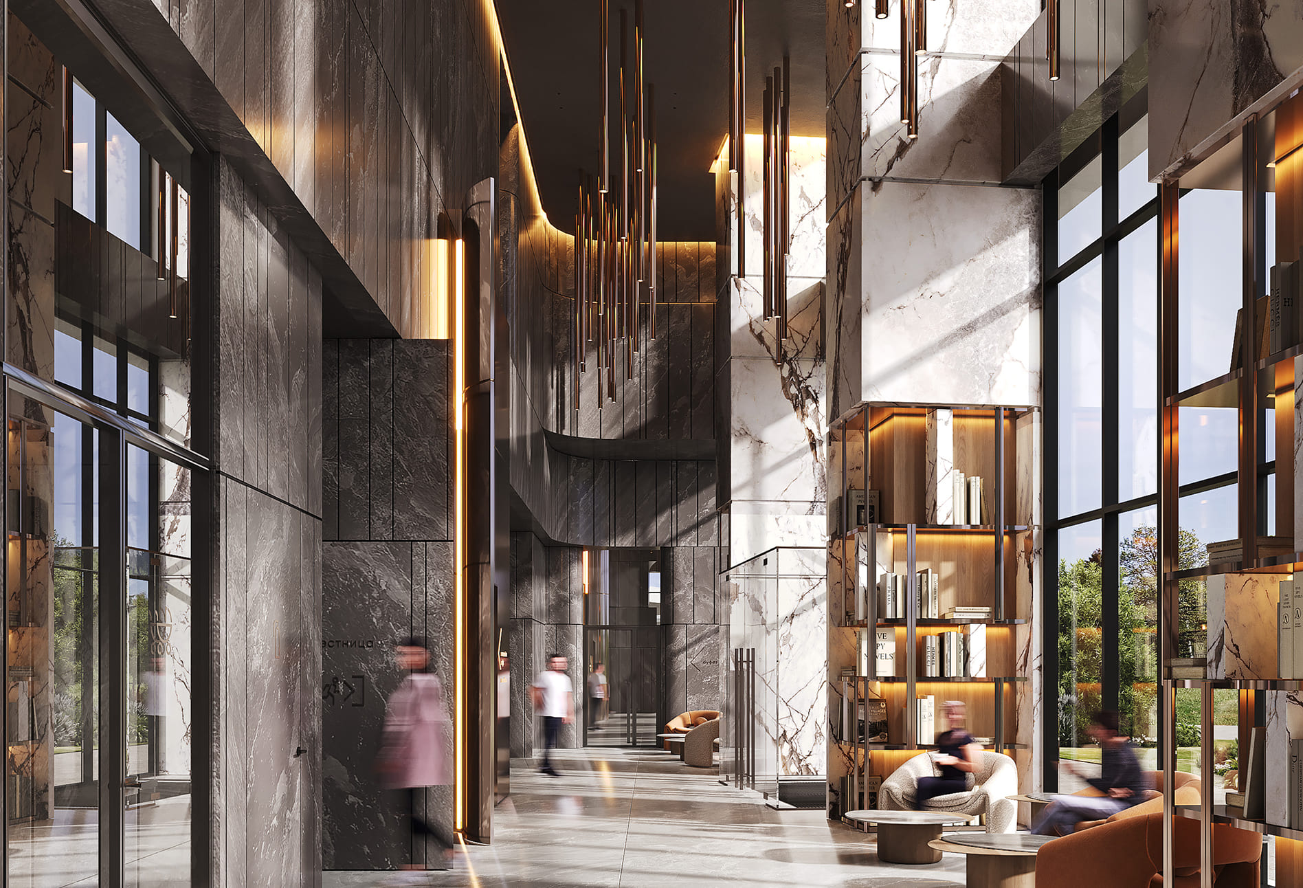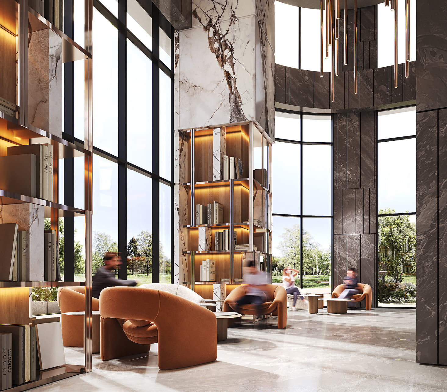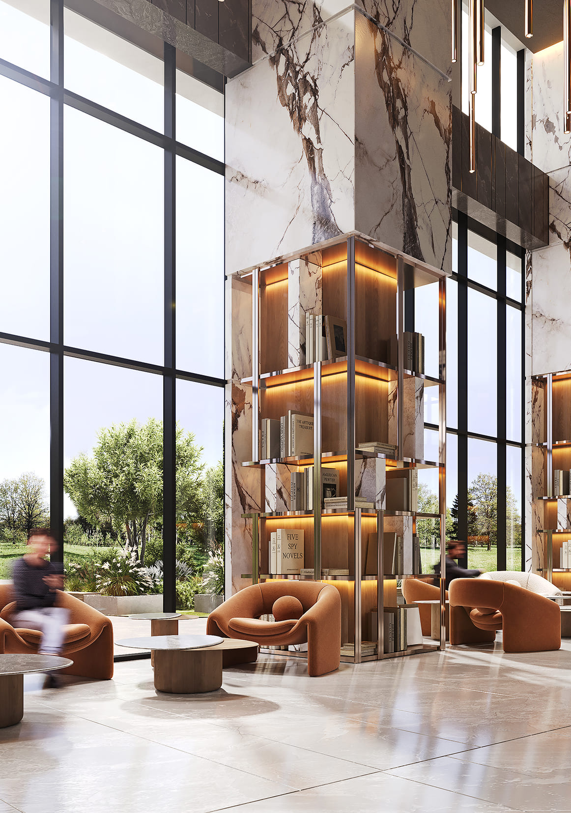 Интеллигентность, сквозящая в архитектурном облике башни, раскрывается в полной мере в пространстве лобби. Здесь вы найдёте библиотеку с большим собранием книг от знакомой с детства классики до современных мотивирующих бестселлеров.
